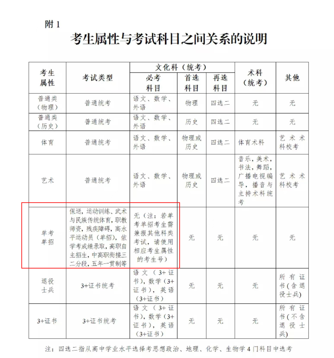 其实自主招生考生号就是同学们之前高考报名领取的考生号,如果你报考的是3+证书的,那3+证书的考生号就是你的自主招生考生号。在考试院发布的《考生属性与考试科目之间关系的说明》,单考单招那一栏,特别注明若单考单招考生需兼报其他科类考试,请使用相应考生属性的考生号。