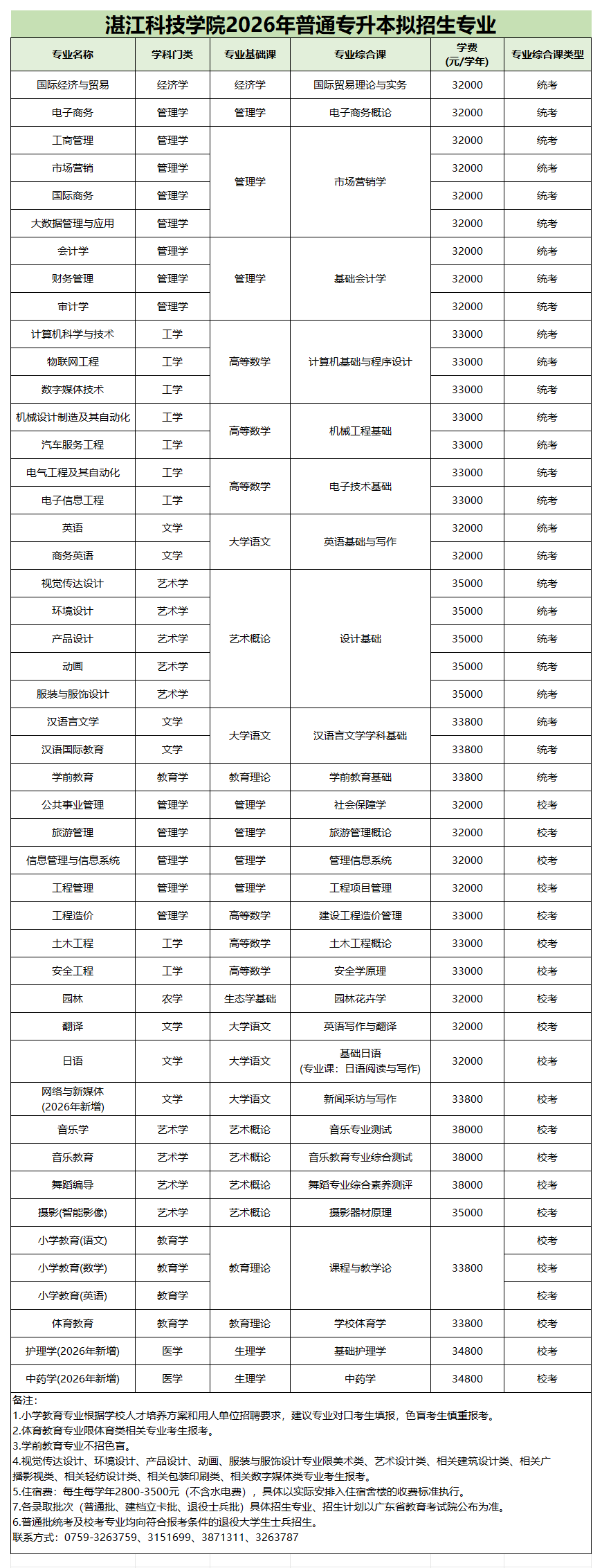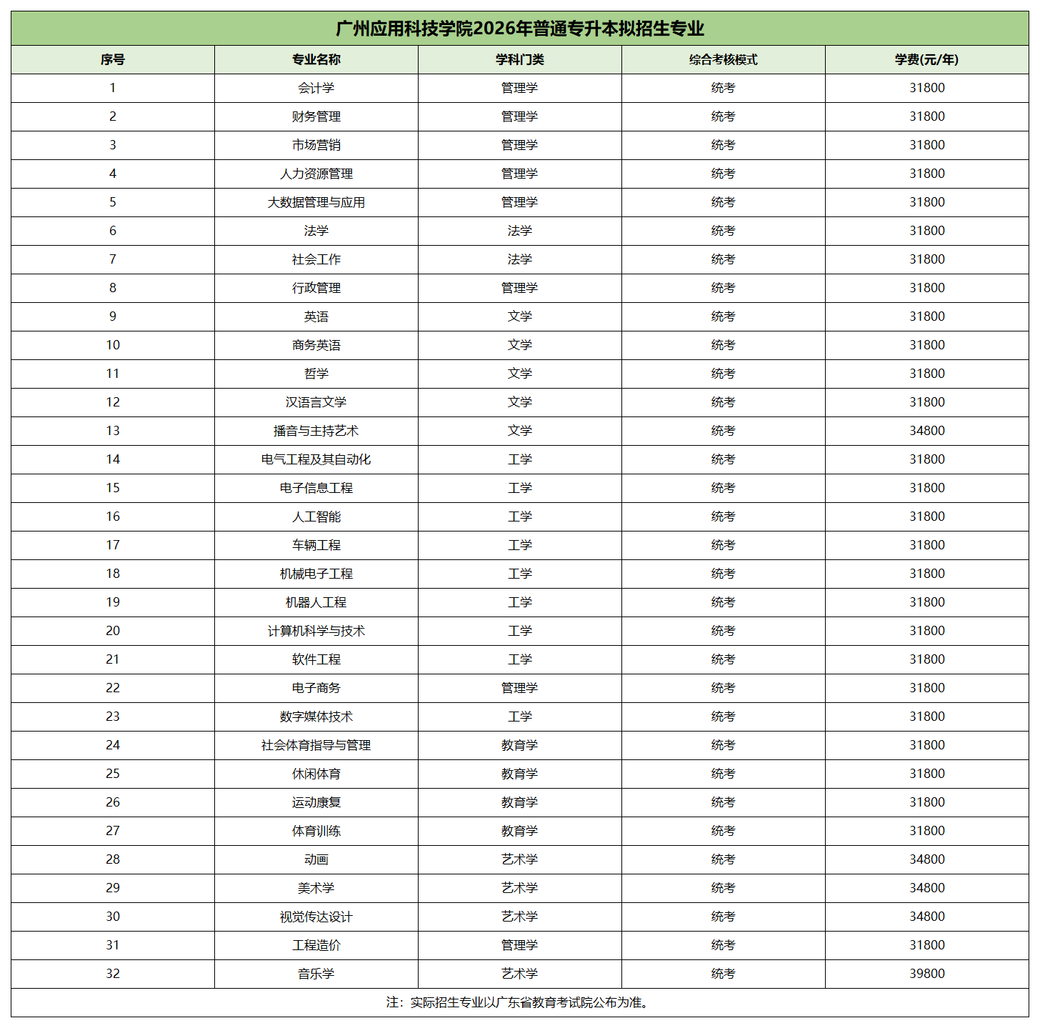 拟招生专业共32个