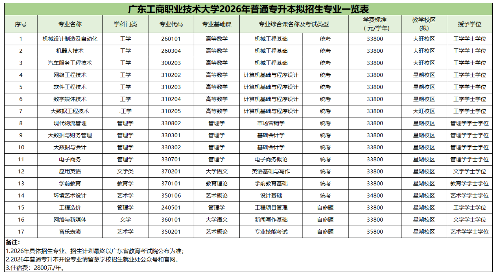 新增专业:7个,机器人技术、汽车服务工程技术、数字媒体技术、大数据工程技术、大数据与财务管理、电子商务、工程造价