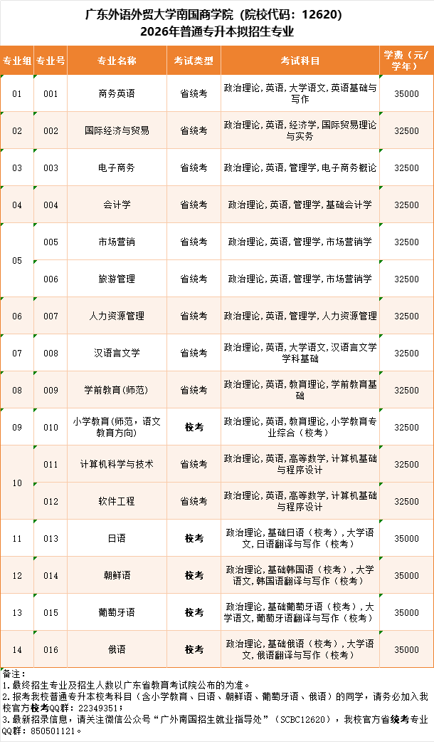 (最终招生专业、考试科目以广东省教育考试院公布为准)