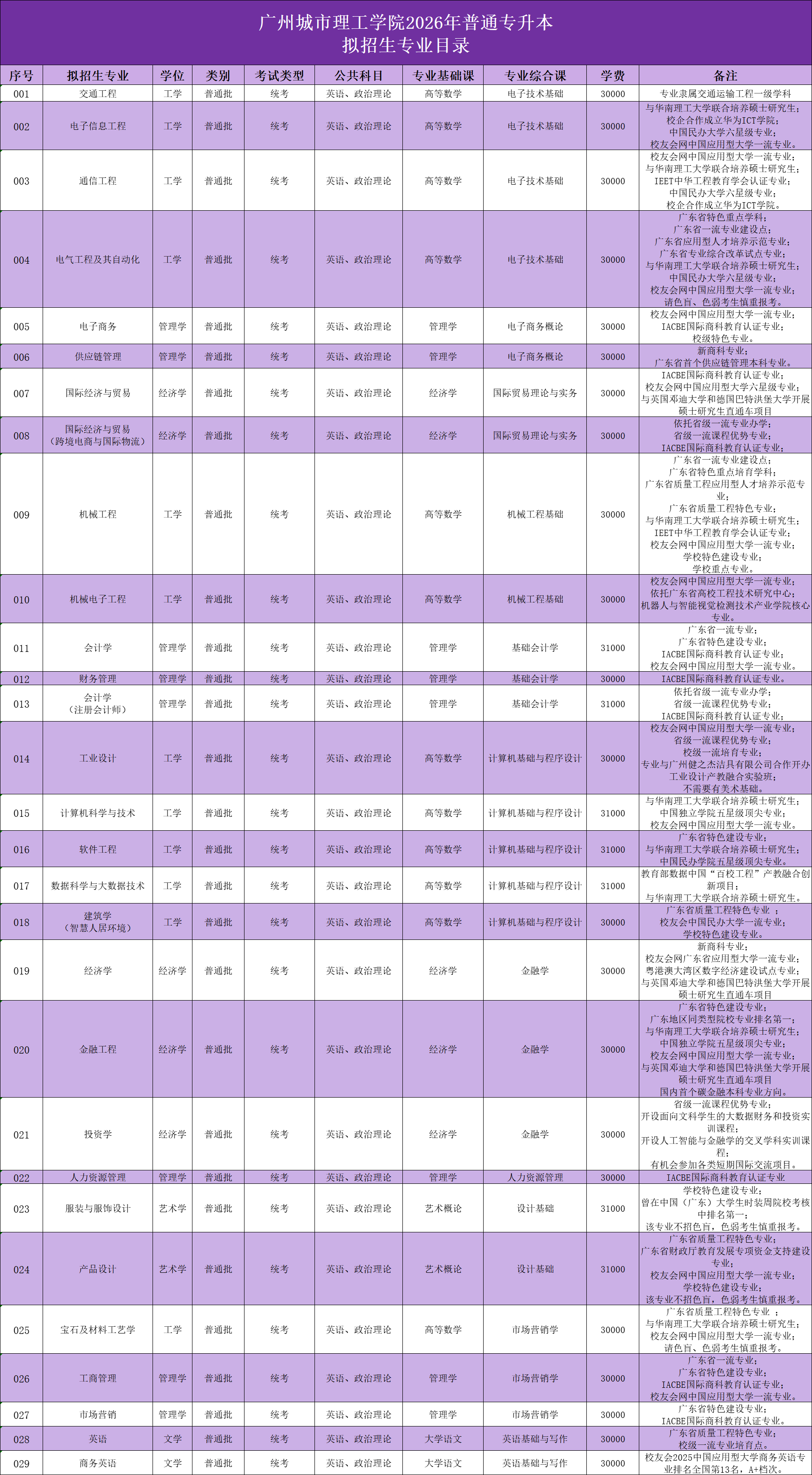 重磅!广州城市理工学院2026年拟开设31个普通专升本招生专业相较去年新增15个专业
