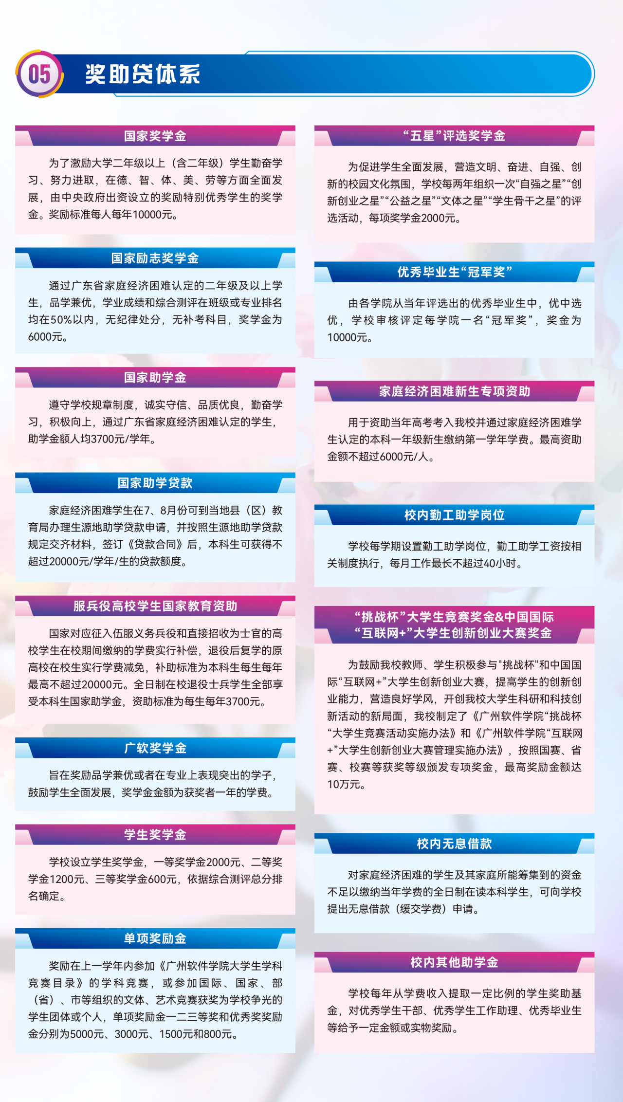 广州软件学院各项奖助学金汇总