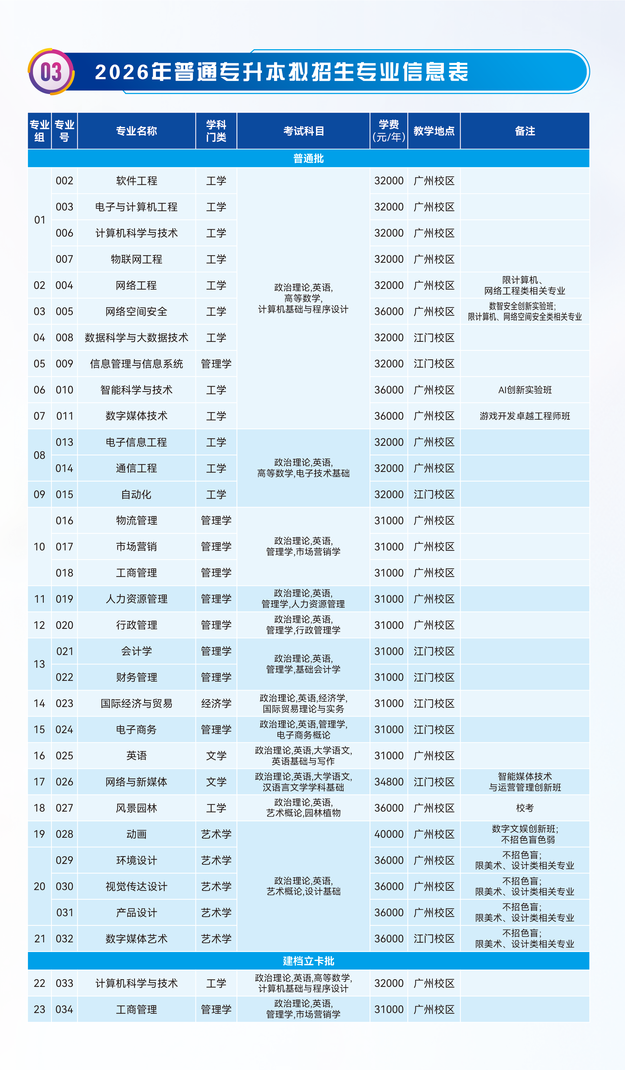 1.具体招生专业、招生计划、考试科目要求、收费标准及相关说明以广东省教育考试院核定公布信息为准。