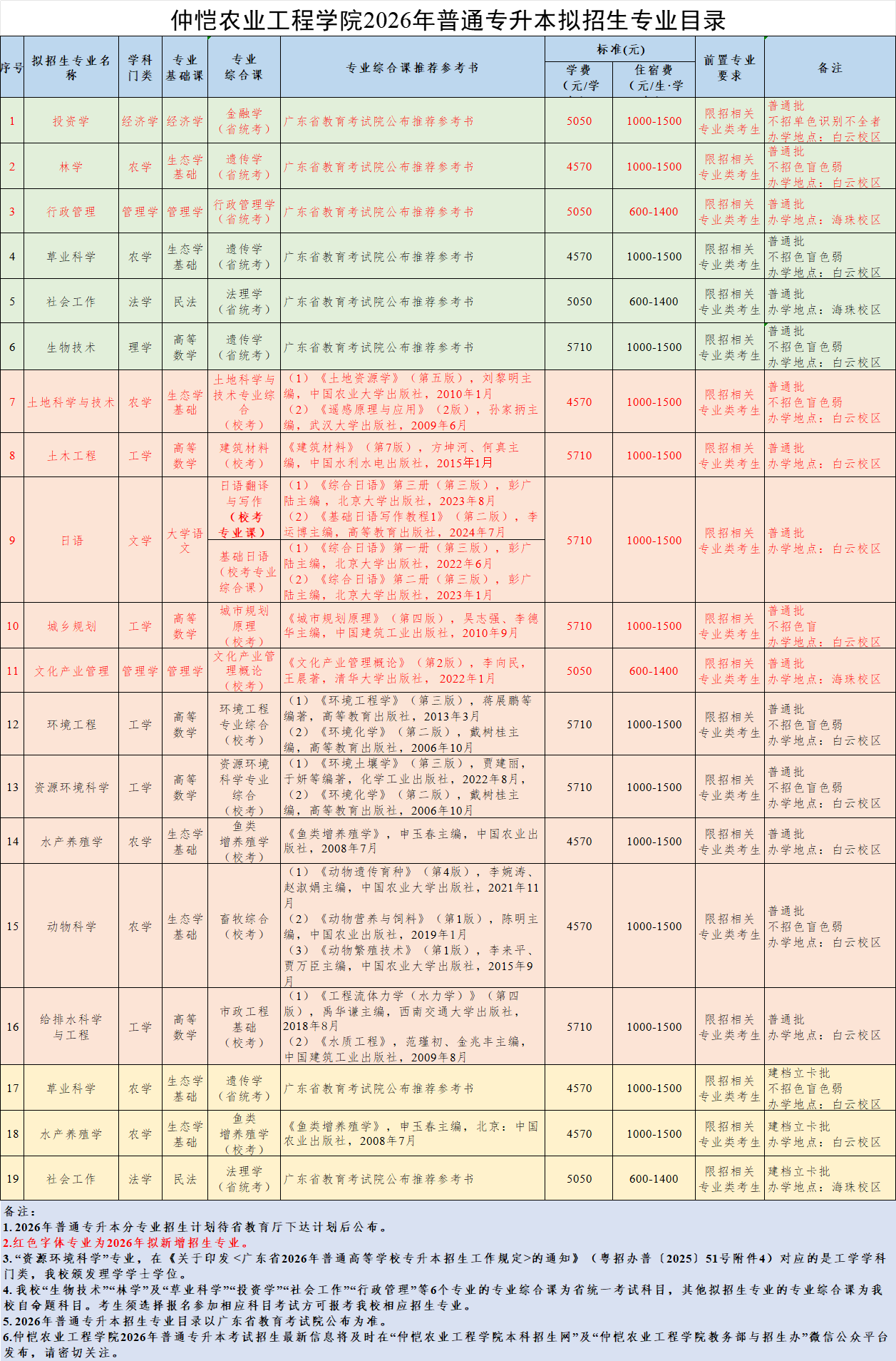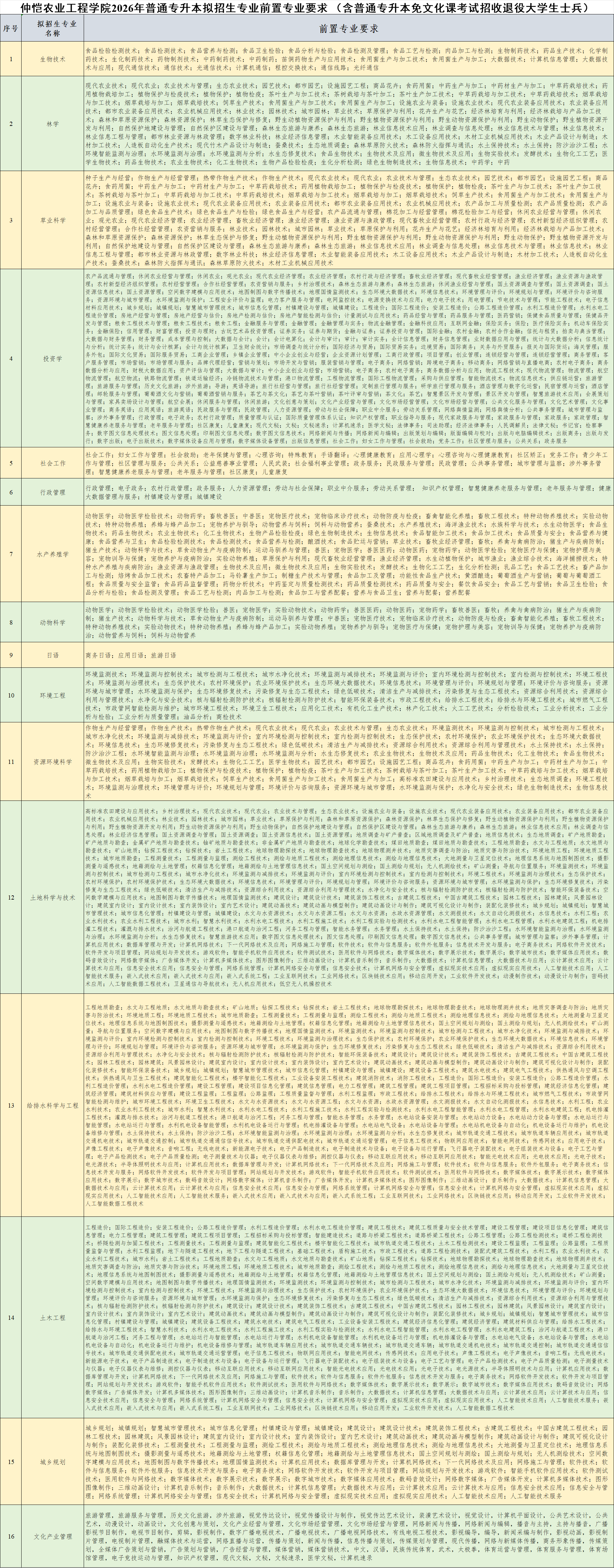 具体拟招生专业目录及前置专业要求,见我校本科招生网(点击“阅读原文”下载)或“仲恺农业工程学院教务部与招生办”微信公众平台推文。