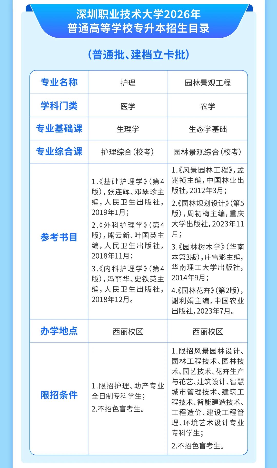 校2026年普通专升本拟招生专业为护理、园林景观工程