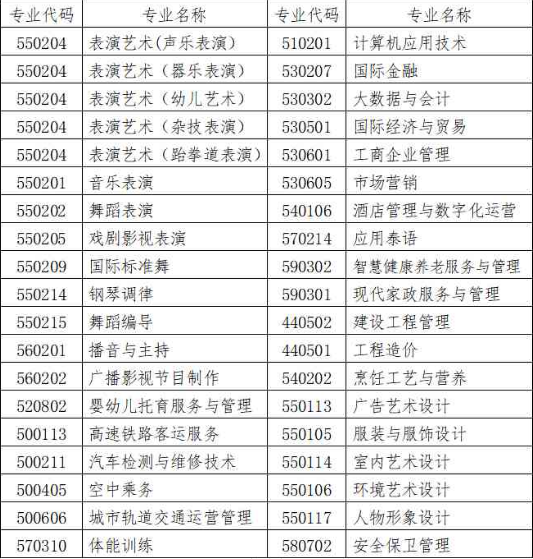 六、对口招生专业(具体招生专业及计划以招生考试院网站公布为准)