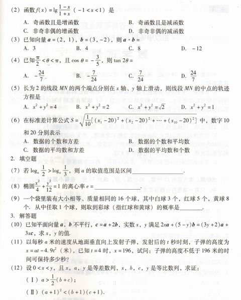 数学科考试旨在测试考生对数学的基础知识、基本技能和基本的数学思想方法的掌握程度,以及观察能力、空间想象能力、分析与解决问题能力和数学思维能力。考试内容的确定主要根据教育部颁布的《中等职业学校数学教学大纲》,并结合了广东省中等职业技术教育的实际。对知识的认知要求分为了解、理解和掌握三个层次。