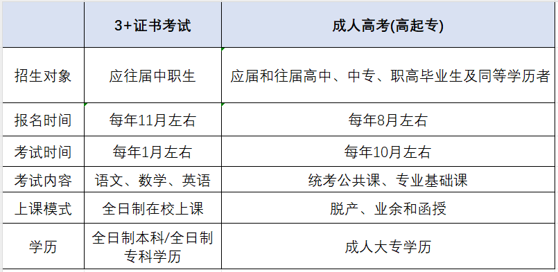所以,对于已报名参加成人高考或者目前已拥有成人学历的考生,只要你符合“3+证书考试”的报考条件,还是可以参加3+证书考试的。