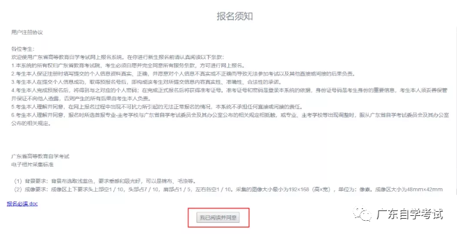 三、报名须知,请考生认真阅读报名须知后点击【我已阅读并同意】按钮